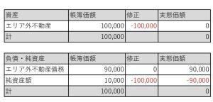 ですので、担保評価ができるエリア外の不動産を借金して保有している場合は、下記のように大幅な債務超過と金融機関がみます。